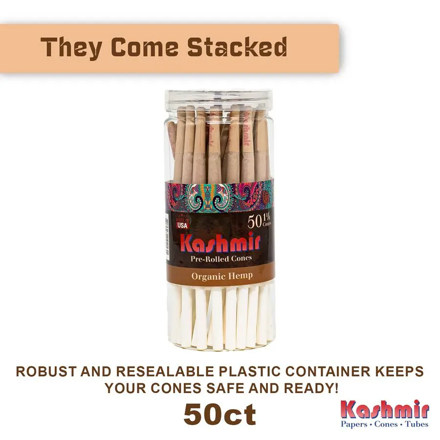 - 50 Count Container: Containing 1 1/4 Mini Hemp Cones 50 Pack resealable jar. It keeps your cones dry, without worry of running out—even when sharing.