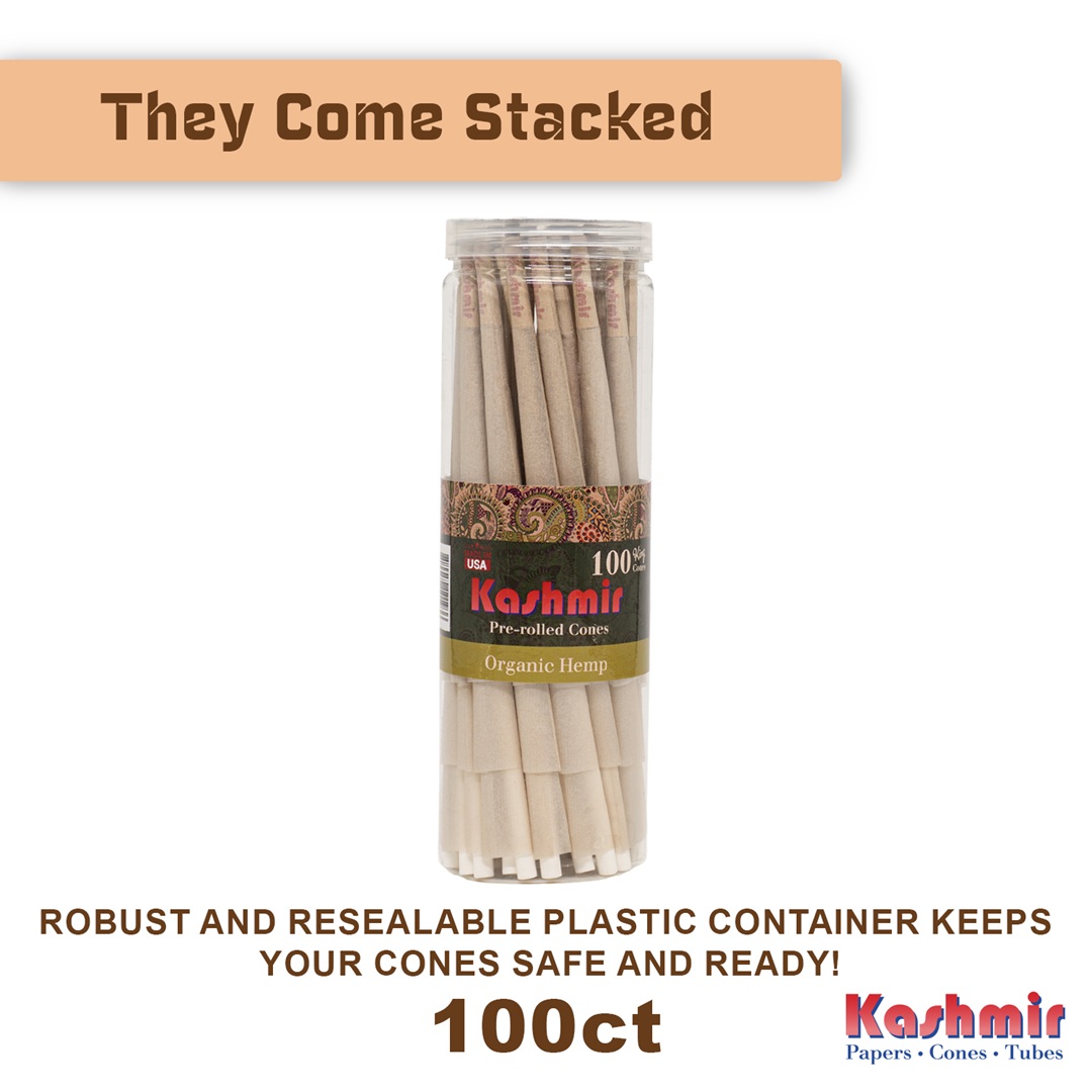 Never run out of cones during your sessions with Kashmir420’s 100% Organic Hemp Cones (King Size) in a value 100-count pack. This large airtight jar holds 100 pre-rolled King Size cones (109mm), ensuring you have an abundant supply for daily smoking or sharing with friends.