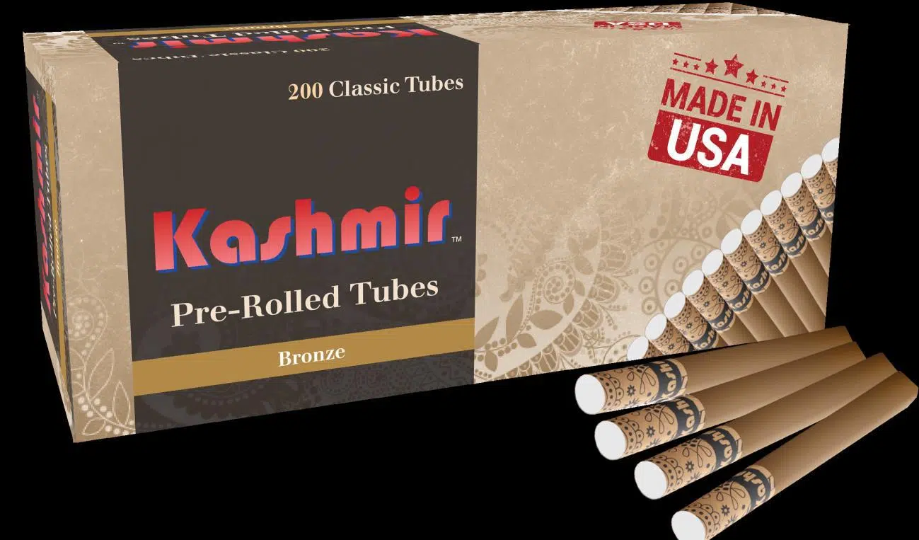 Kashmir 200ct Bronze Brown Pre Rolled Tubes – king size empty filter cigarette tubes for smooth & even burn. Proudly made in the USA, and enjoy easy home delivery across the USA. Order now and enjoy your stylish smoking experience with classic flair!