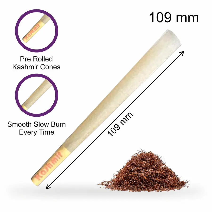 The Kashmir Pre-Rolled Grape Flavored King Cones: 50CT  also come with paper filters that make them even more enjoyable to use. The filters help to reduce tar and other harmful substances when you inhale, ensuring a smoother and less harsh smoking experience. The filters also help to keep your smoking product from getting in your mouth while you enjoy it, making it a more enjoyable and cleaner experience overall. One thing that sets Kashmir Flavored King Cones  apart from other pre-rolled cones on the market is their size. These King cones are much larger than standard pre-rolled cones, which means you can put more smoking products in them and enjoy a longer and more satisfying smoking experience. This makes them ideal for sharing with friends or for those who prefer a larger roll.