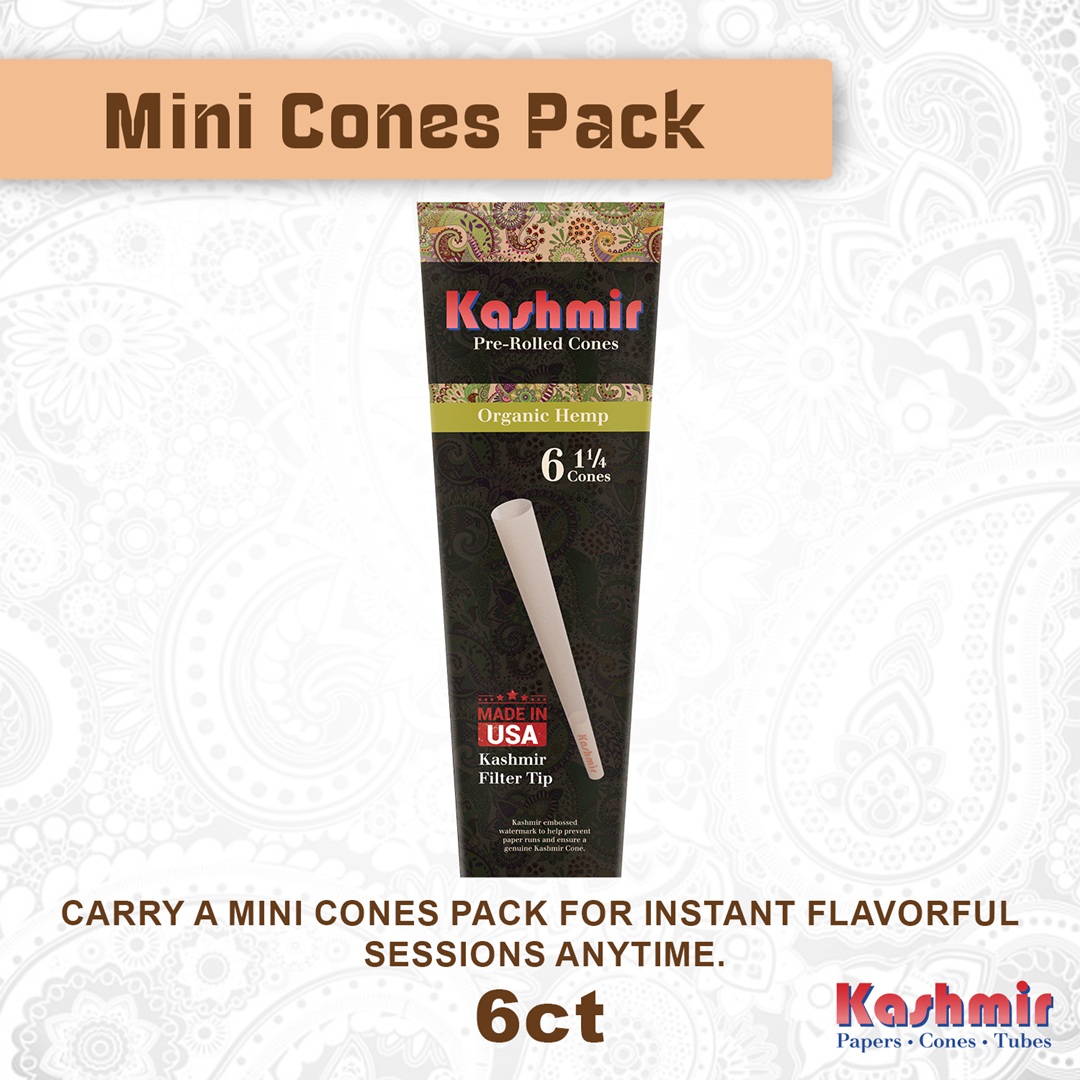 Kashmir’s 100% Organic Hemp Cones Small Pack are best for a cleaner, smoother way to enjoy your premium herbs. This handy pack contains 6 classic 1¼-size pre-rolled cones (79mm each) – the perfect size for a quick personal smoke or a shared session with a friend. Each cone is crafted from certified organic hemp paper that’s unbleached and chlorine-free. So you’ll taste nothing but the pure flavors of your smoking blend without any harsh aftertaste. These short cones hold about half a gram of material each, ideal for a satisfying smoke break.