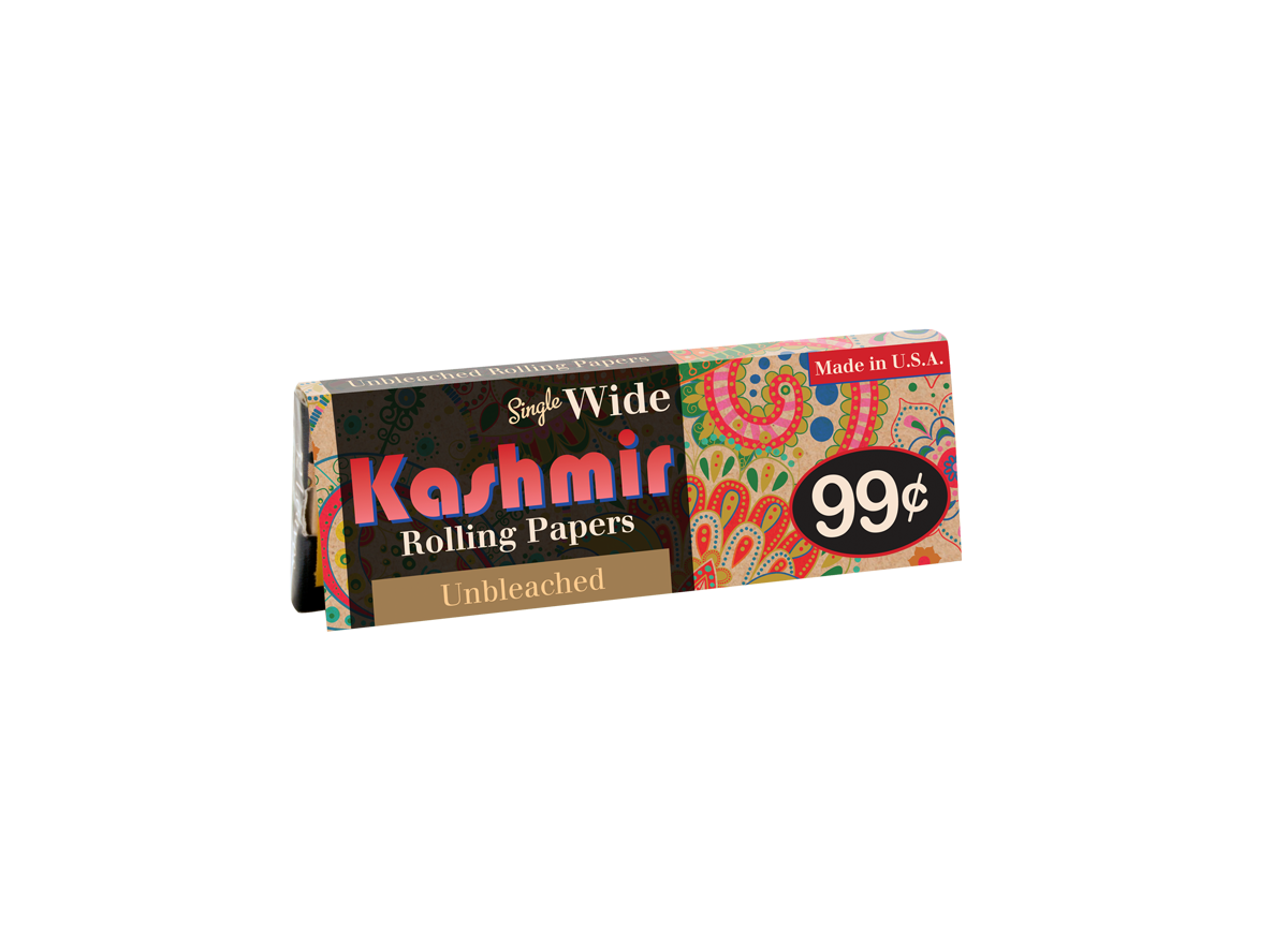 Pocket-friendly size. Clean, steady burn. Kashmir Unbleached Single Wide Rolling Papers are crafted from unbleached fibers in a light, easy-rolling finish. The sheet lights evenly and stays consistent for a smooth draw with less paper taste and minimal ash. With no chlorine, inks, or dyes, your blend’s aroma comes through clearly from spark to finish. A natural plant-based gum helps you roll quickly and seal tight every time.